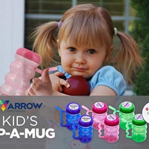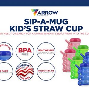 Details: Arrow Plastics 00168 Sip-A-Mugs come in fun assorted colors that kids will love. Screw on lid helps keep drink inside. Built in straw. Fourteen ounce capacity.